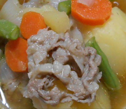 ニンジンとささげ豆を入れた肉じゃが。