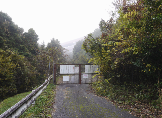 駐車場すぐの獣よけゲートを潜る 高速道路が霞んでるの判る?