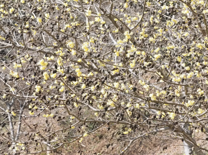 鳴川渓の駐車場に蝋梅が満開で見事やった。