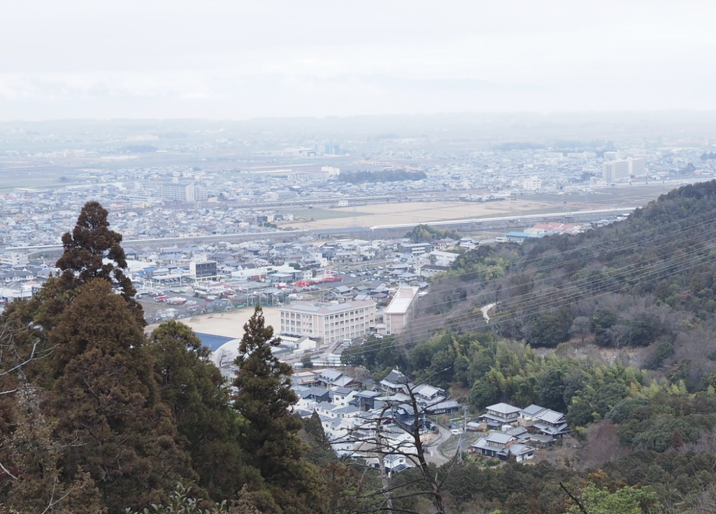 下山途中で撮った一枚 手前に新幹線 奥に東海道線の貨物列車が見えてるんやけど、判る?