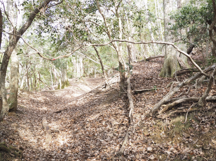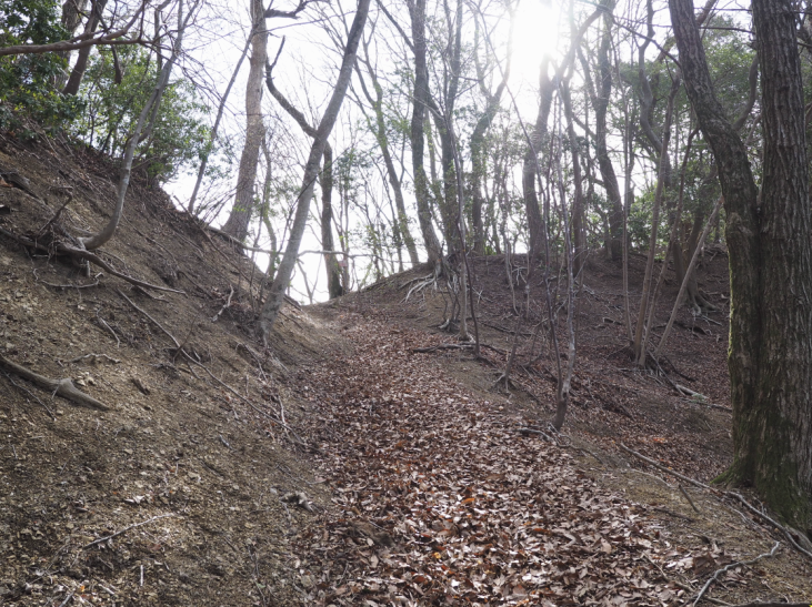 落ち葉をサクサク踏みながら急坂を登っていく