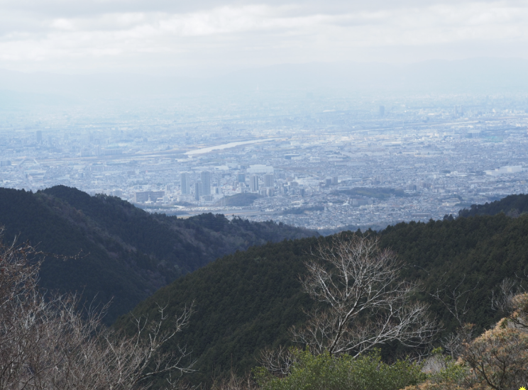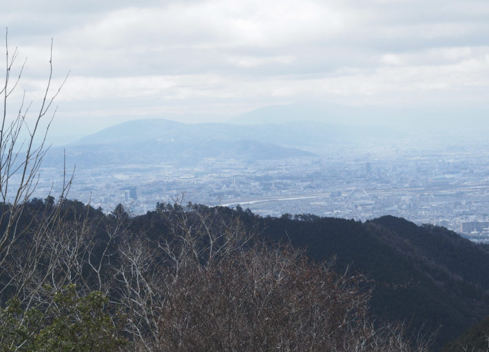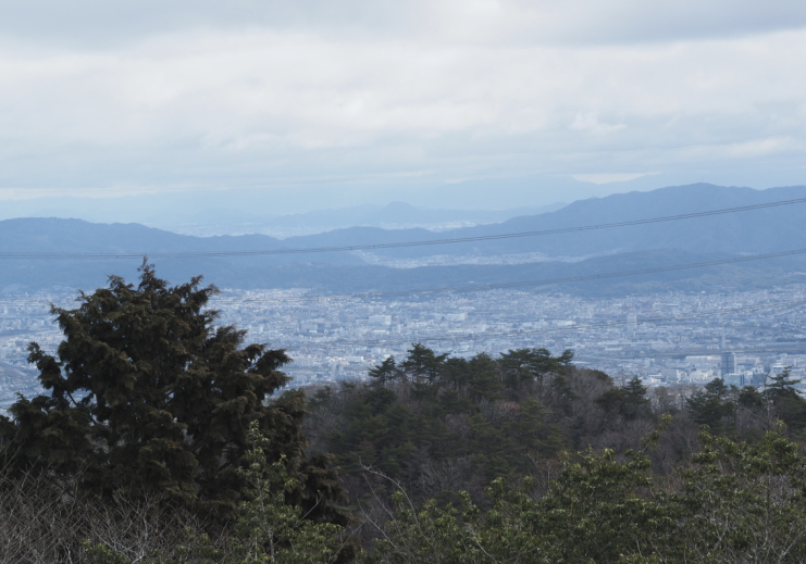 東に京都市街 その奥に鈴鹿山脈まで見えてる