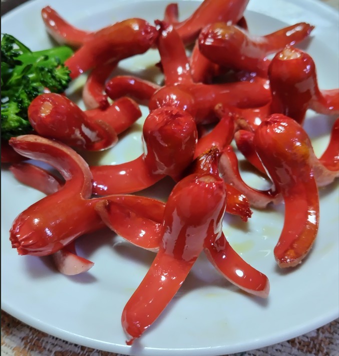 姉妹サイトとしてスペイン語学習サイトを運営していますが、そこにも書いたとおり、「やはり、ライティングは自分で書かないと上達しない」(当たり前ですね)ということで、いませっせと同じく姉妹サイトであるスペイン語の日本紹介サイトをリニューアルしています。今やっているのは、「食べ物系」のコンテンツなのですが、興味深いのは英語とスペイン語の冠詞の微妙な違いです。ここら辺もライティングをしていないと気づかないところです(まあ、おもしろいと感じるかどうかは別にして)。たとえば、この写真のキャプションをつけるとすると、「お皿に並べた蛸さんウインナー」となるわけですが、これをそれぞれ英語、スペイン語にすると(ソーセージの種類などはシビアに表現してませんのであしからず)英語: