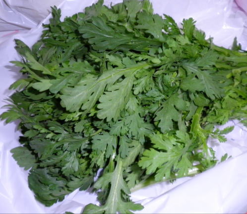 As a small child, I hated it whenever this food was put on the dinner table because its strong, refreshing aroma was not agreeable. But after growing up, I understood why my mother said, “This distinctive aroma is the reason people love this food”. Literally meaning “spring chrysanthemum”, Shun Ghiku refers to several species of crown daisy (Glebionis coronaria), originating in the Mediterranean, whose leaves are consumed as a green vegetable. It’s also called “Kiku Na” (chrysanthemum leaf vegetable) in the Kansai region. It’s eaten as an ingredient of Nabe Ryōri (pot cuisine), such as Sukiyaki (beef pot cuisine) and Yudōfu (Tōfu pot cuisine), or even Ohitashi or Tempura.